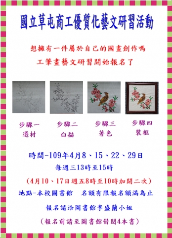 108學年第二學期工筆畫藝文研習,歡迎各位老師報名參加