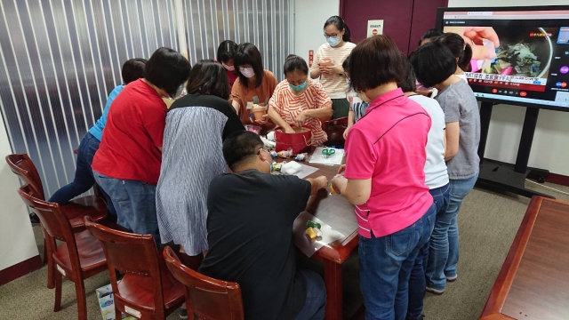研習邀請南投縣手工藝發展協會總幹事陳慧如老師擔任講師,透過黏土特性講解及顏色配色與調色方式進行,計有教職同仁48人次參加。本次題材以海芋為研習製作主題,老師從講解到示範,讓本次參加的教職同仁,回憶起小時候玩泥巴的感覺,歡笑聲不斷,藉以提升教職員對黏土花藝的學習興趣,啟發教職員參與藝文活動的動機,並於爾後能規劃時間主動從事藝文活動,展現出個人創意的作品風格,達到寓教於樂之目的,也藉此達成營塑學校校園藝文氛圍,美學素養融入校園環境的目的。