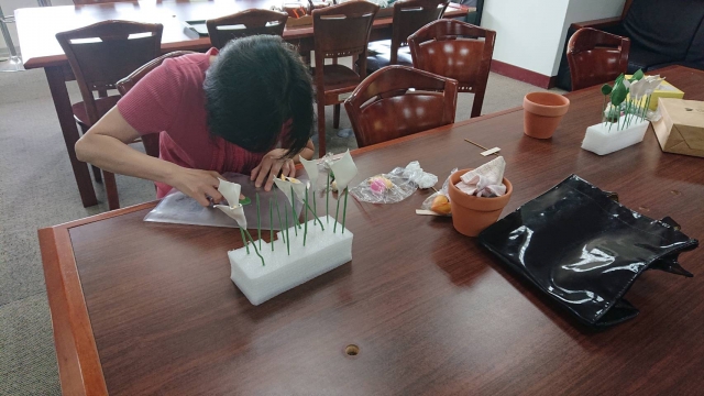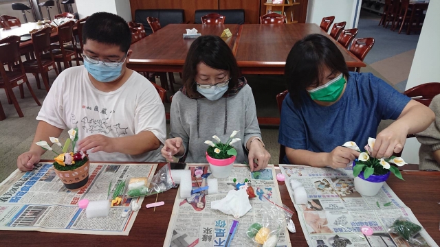 本次辦理黏土花藝製作藝文研習,為配合本校63周年校慶活動,及圖書館辦理藝文展覽為主題。