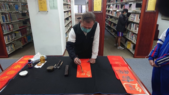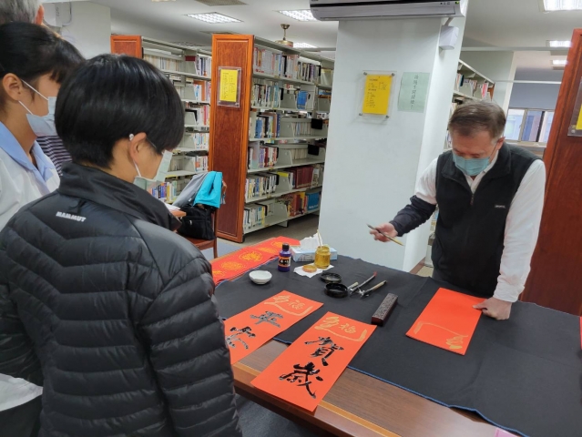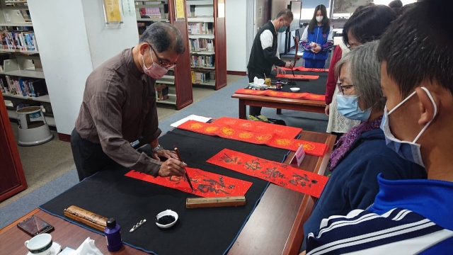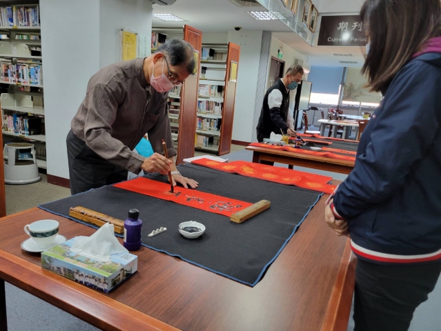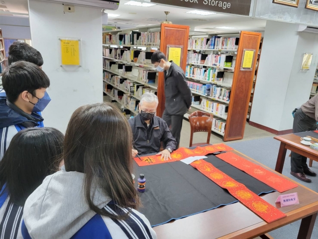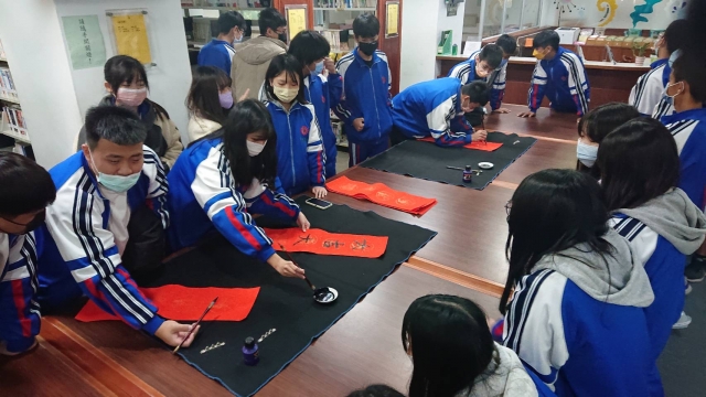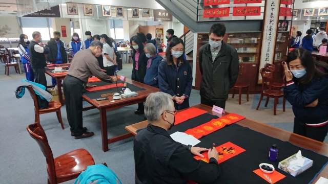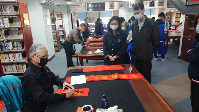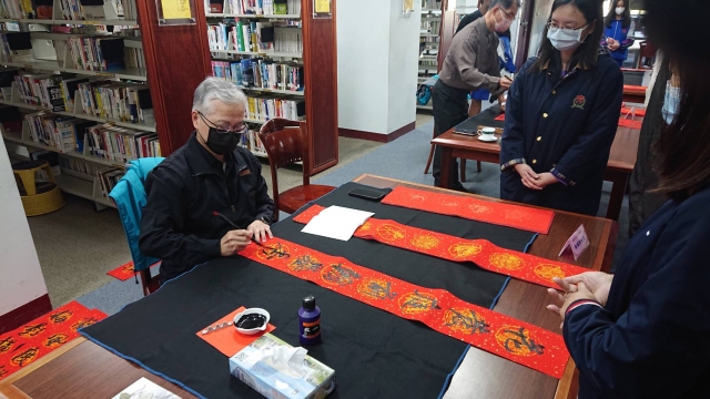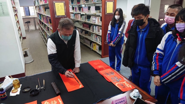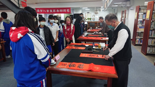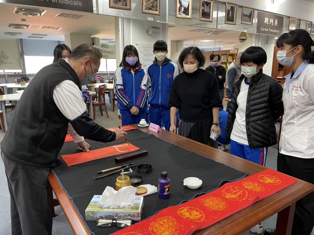 、前國立埔里高中退休李印章主任教官蒞校指導,三位教官平時精於書法的寫作,對於書法有非常獨特的能力及見解,本次邀請除現場春聯揮毫教學之外,更教導師生如何書寫春聯,大家受益良多,達到寓教於樂之目的,也藉此達成營塑學校校園藝文氛圍,美學素養融入校園環境的目標。