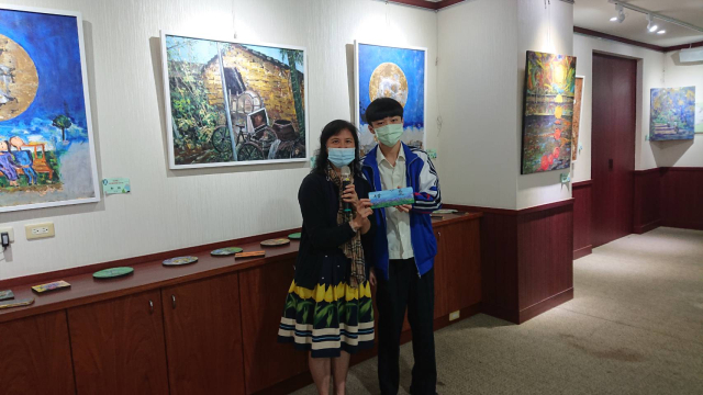 此次也配合鄭老師創作展覽,從4月1日起至5月31日止,共計展出30件油畫與流彩畫創作作品,對於家鄉情懷及父母親情有很多的詮釋,引導出她對藝術的熱愛與堅持。