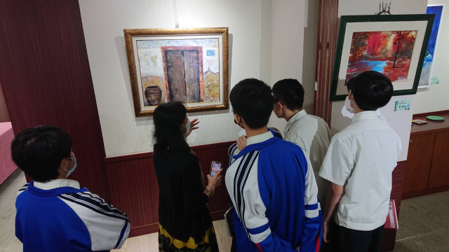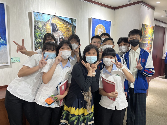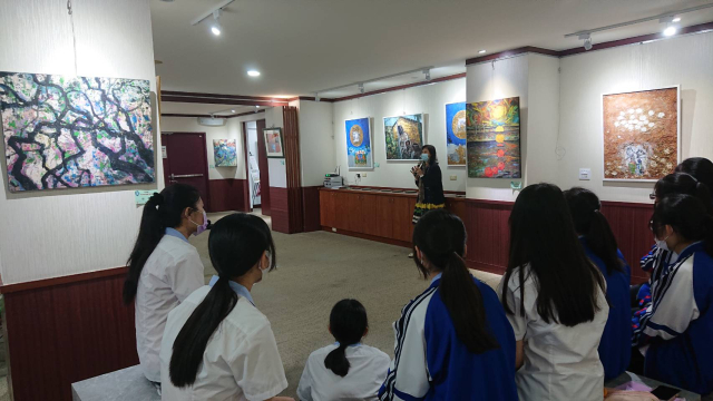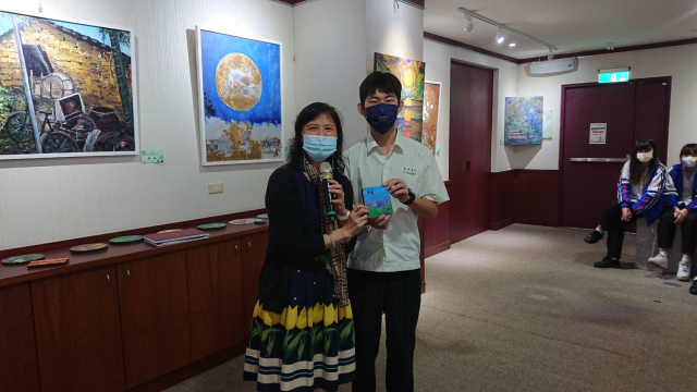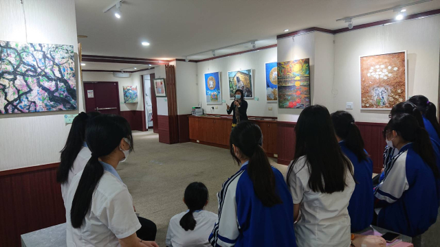 從生命教育談藝術創作與融合藝文演講,邀請本學期蒞校設展的鄭芬蘭老師蒞臨,並分享她如何從憂鬱中走出人生與利用藝術來傳播愛,師生受益良多;鄭芬蘭老師是臺中清水人,生長在樸實的農村,美麗的家鄉景色成為了她創作的藝術種子。多年來,鄭老師擔任社區大學美術老師,希望透過藝術,傳達生命與真善美的精神。