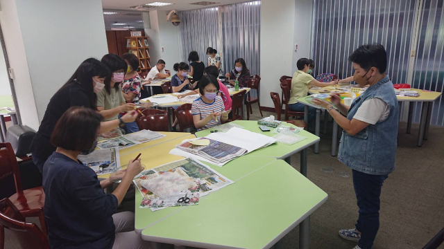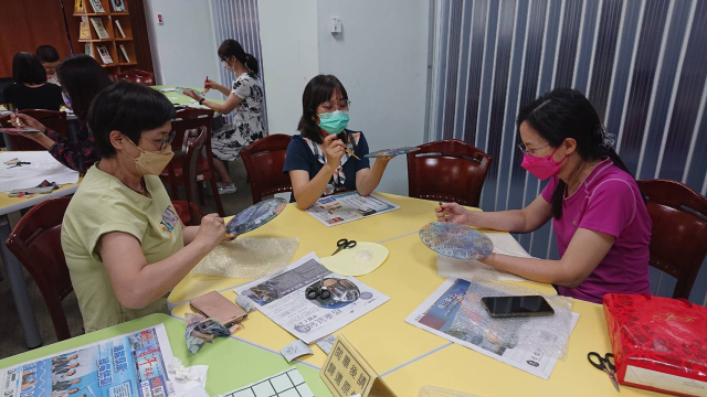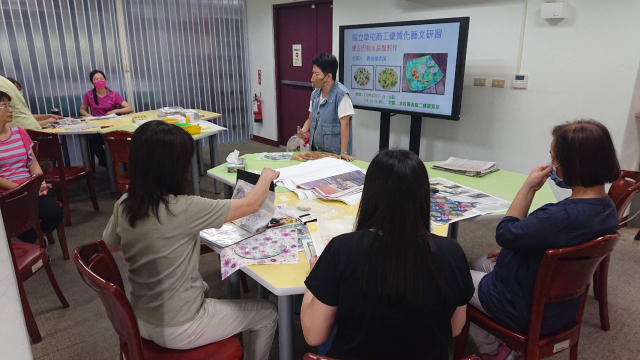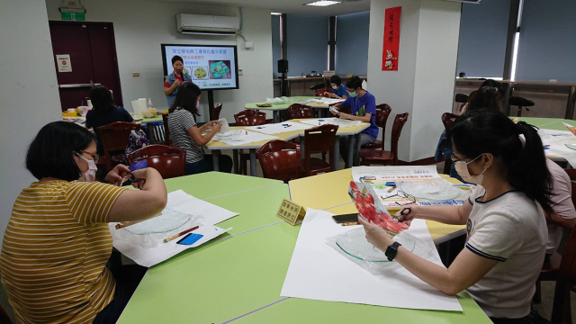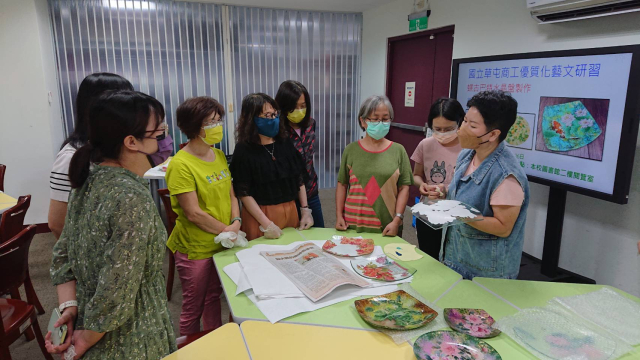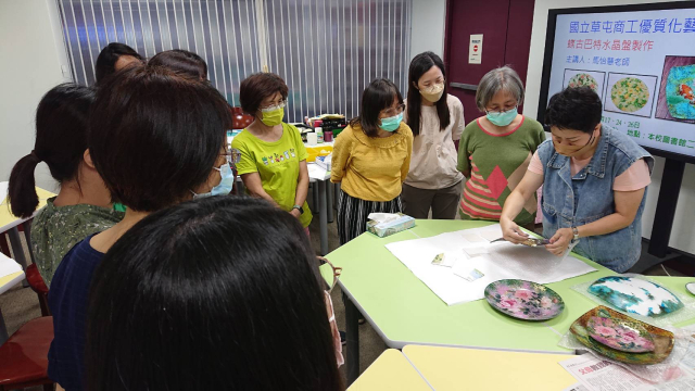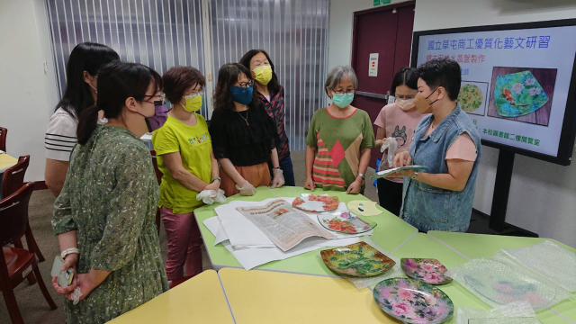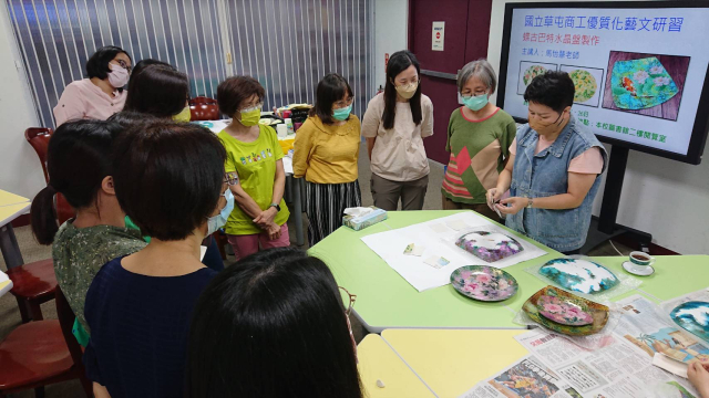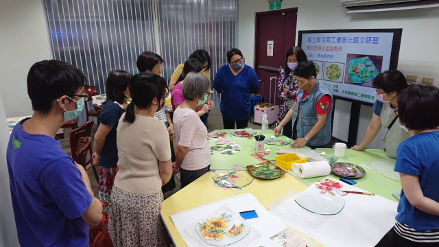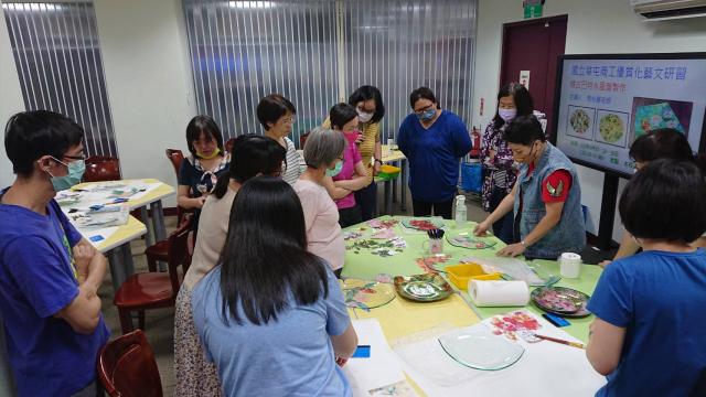 本次辦理二梯次蝶古巴特玻璃盤製作藝文研習,計有60人次參加。邀請蒂瑪創意設計工作室負責人馬怡慧老師擔任講解及示範,藉以提升學員對蝶古巴特手作的認識與學習的興趣,啟發師生參與藝文活動的動機,本次以玻璃水晶盤為主題,加上對不同紙張材料及金箔的施作,創造出歐風典雅的水晶盤,展現出個人創意的作品風格,達到寓教於樂之目的,也藉此達成營塑學校校園藝文氛圍,美學素養融入校園環境的目的。