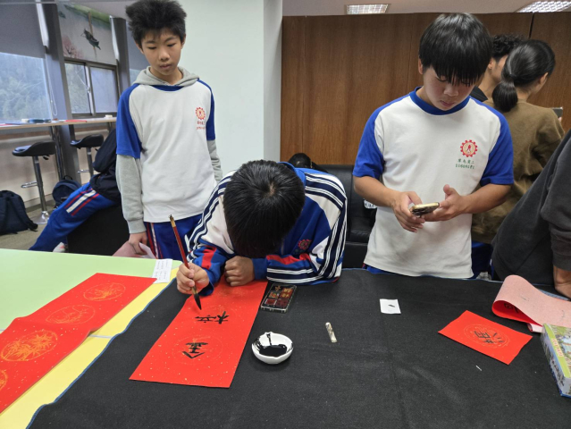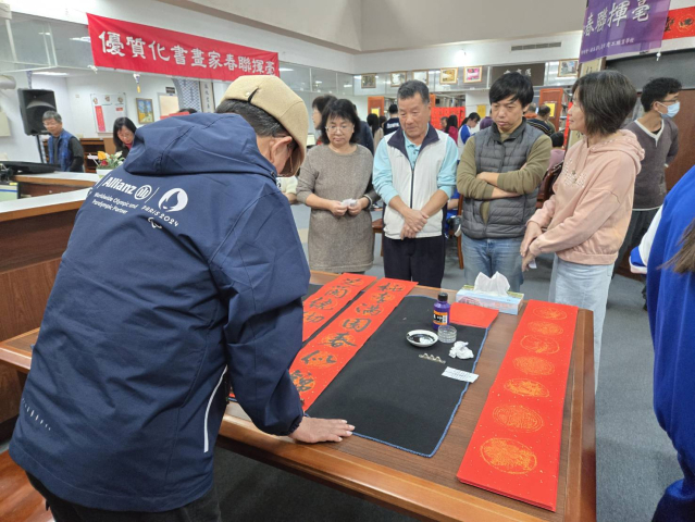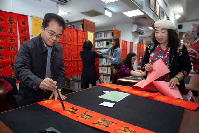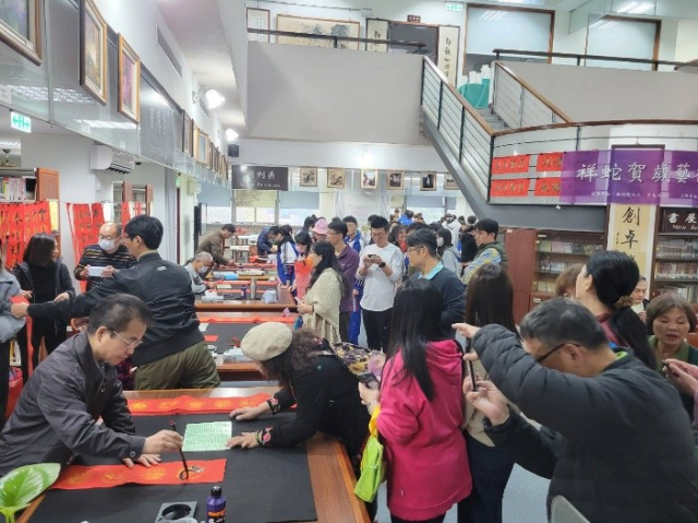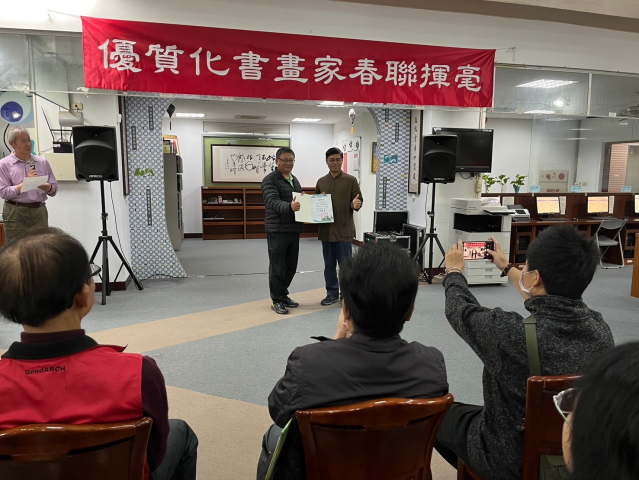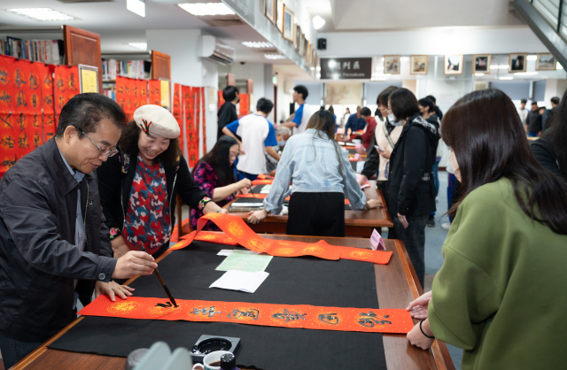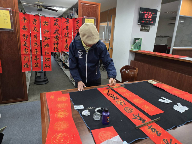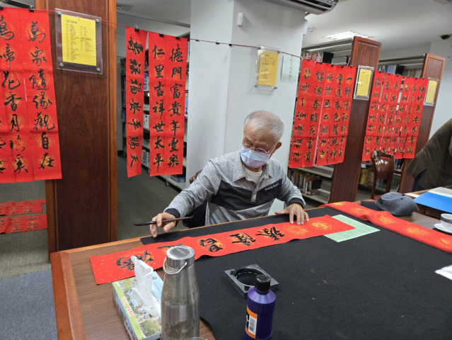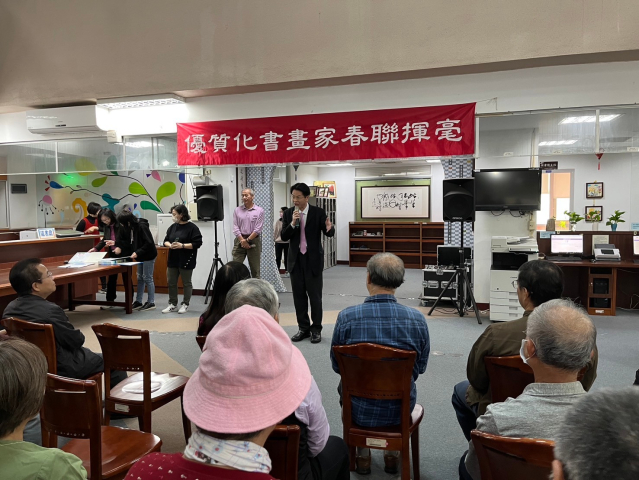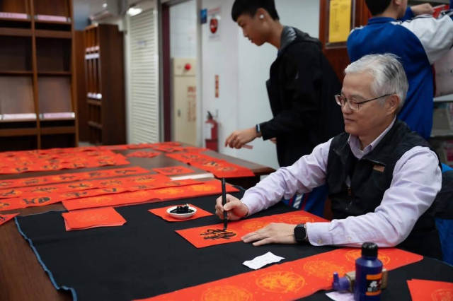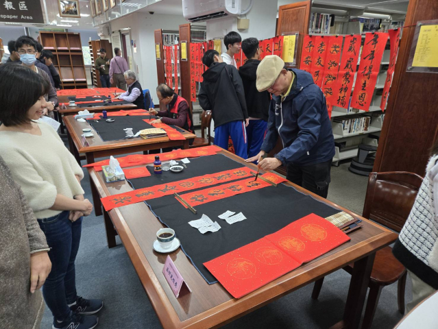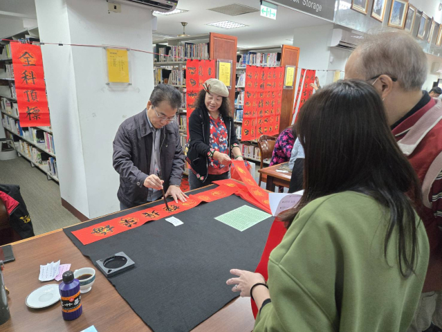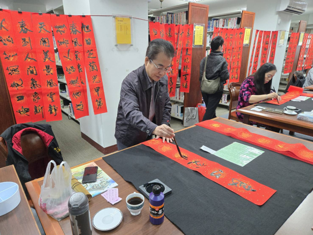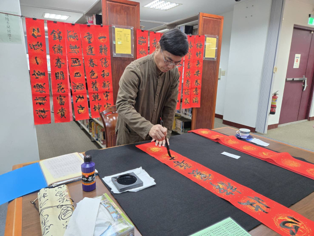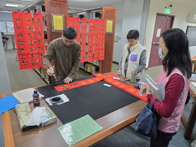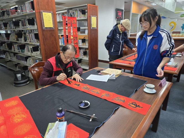 圖書館26日與南投縣明道文化薪傳協會合辦春聯揮毫活動,熱情邀請知名書法藝術家蒞臨草屯商工現場春聯揮毫,包括南投縣文化局林榮森局長、柯智美理事長、吳明晃校長、曾惠楨校長、陳耀銓教官、林進發老師、洪嘉勇老師、鄭連鈺老師等8人。讓全校師生對於傳統年節有不一樣的學習,師生在藝術家的指導下,圍繞在藝術家前專注欣賞如何書寫春聯,請教春聯的意涵,無形中拉近了師生與藝術的距離;現場也提供學生揮毫活動,讓學生自己寫下春聯及今年的願望,校園生活中處處充滿藝文氣息,已有過年的氛圍。透過春聯揮毫教學活動,將藝術融入於校園之內,讓師生們體驗中華文化之美,是一次非常有教育意義的傳統藝術與學習活動。