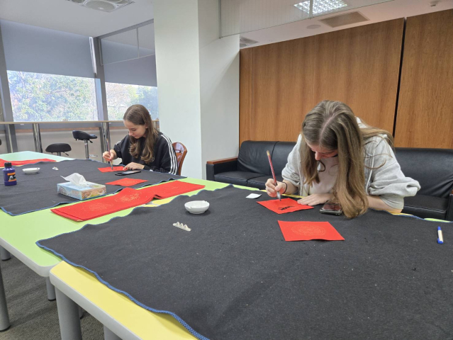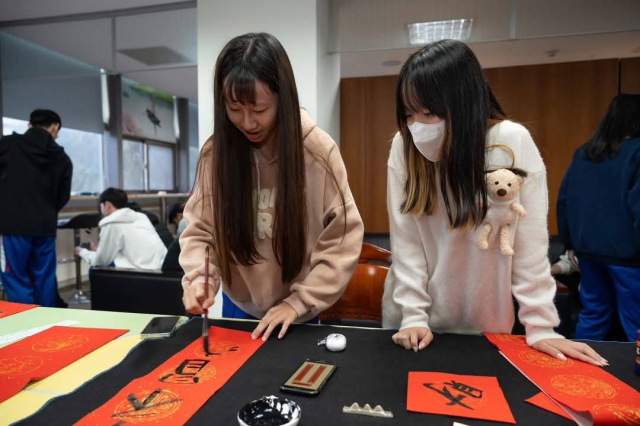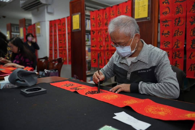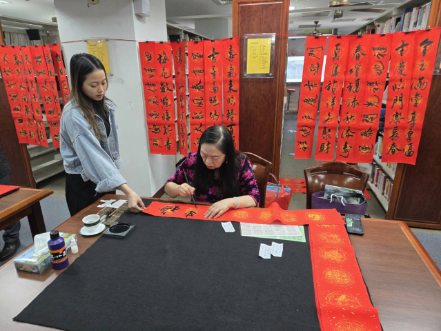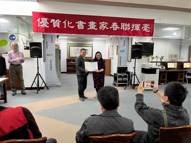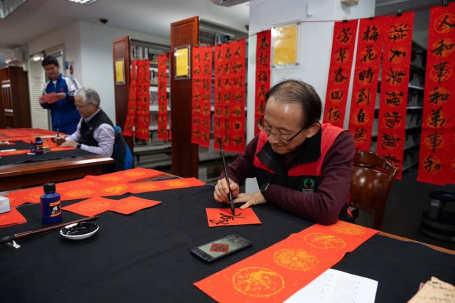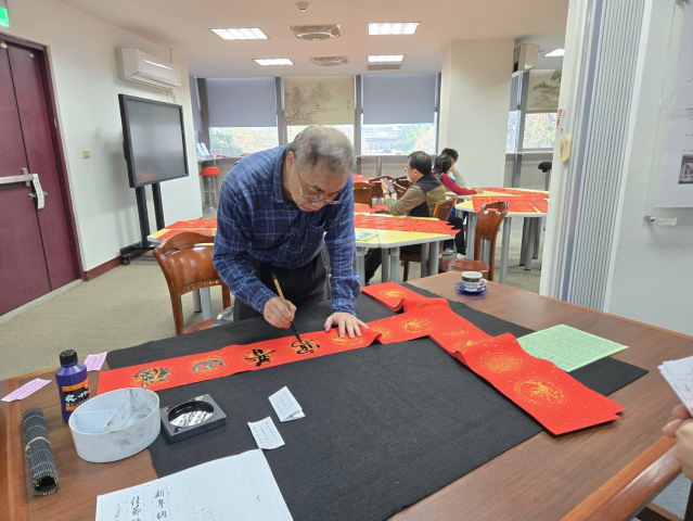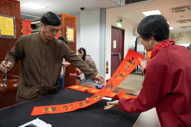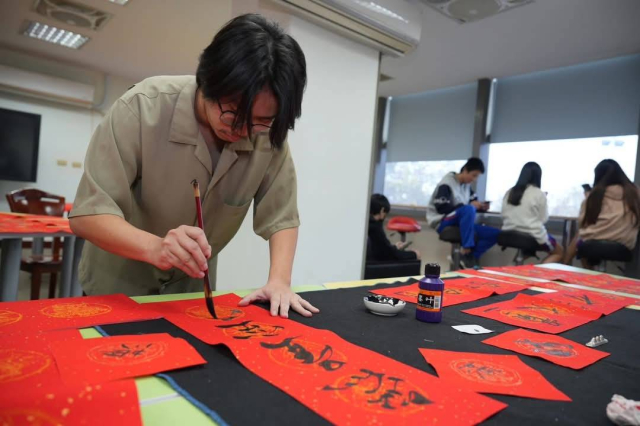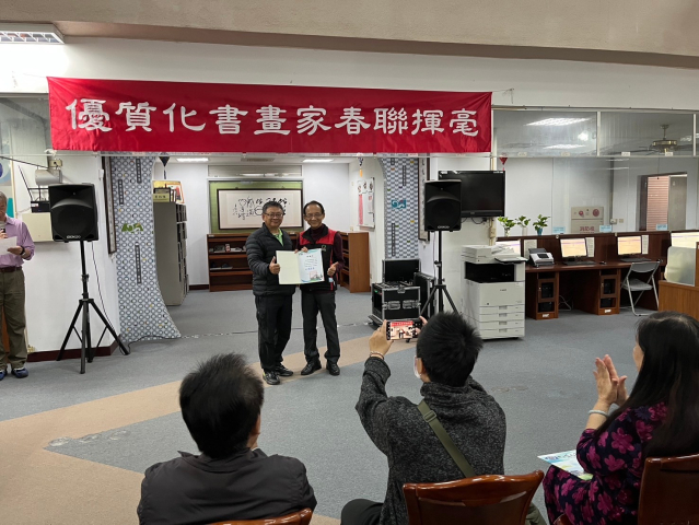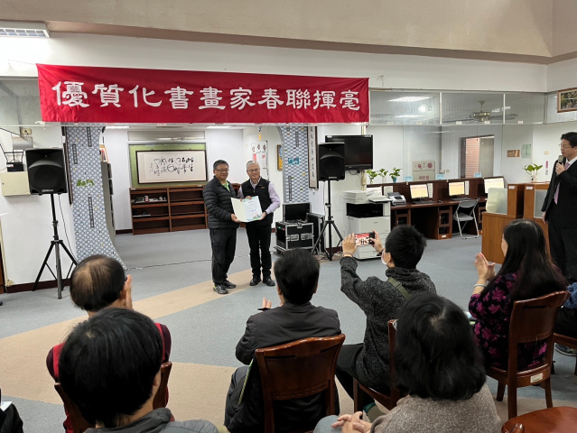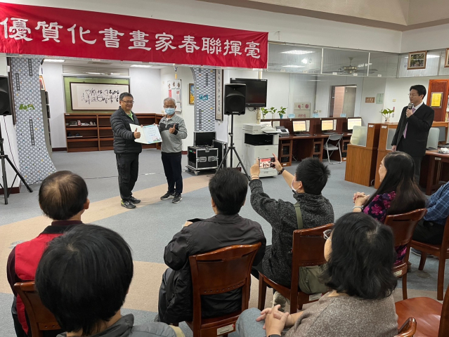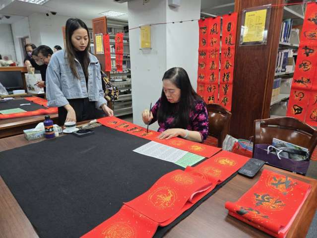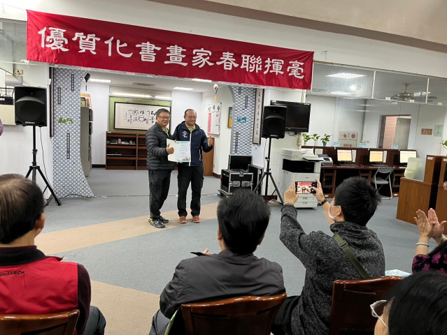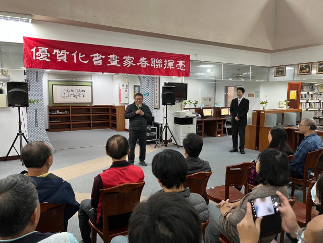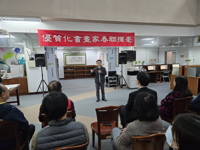 圖書館26日與南投縣明道文化薪傳協會合辦春聯揮毫活動,熱情邀請知名書法藝術家蒞臨草屯商工現場春聯揮毫,包括南投縣文化局林榮森局長、柯智美理事長、吳明晃校長、曾惠楨校長、陳耀銓教官、林進發老師、洪嘉勇老師、鄭連鈺老師等8人。讓全校師生對於傳統年節有不一樣的學習,師生在藝術家的指導下,圍繞在藝術家前專注欣賞如何書寫春聯,請教春聯的意涵,無形中拉近了師生與藝術的距離;現場也提供學生揮毫活動,讓學生自己寫下春聯及今年的願望,校園生活中處處充滿藝文氣息,已有過年的氛圍。透過春聯揮毫教學活動,將藝術融入於校園之內,讓師生們體驗中華文化之美,是一次非常有教育意義的傳統藝術與學習活動。