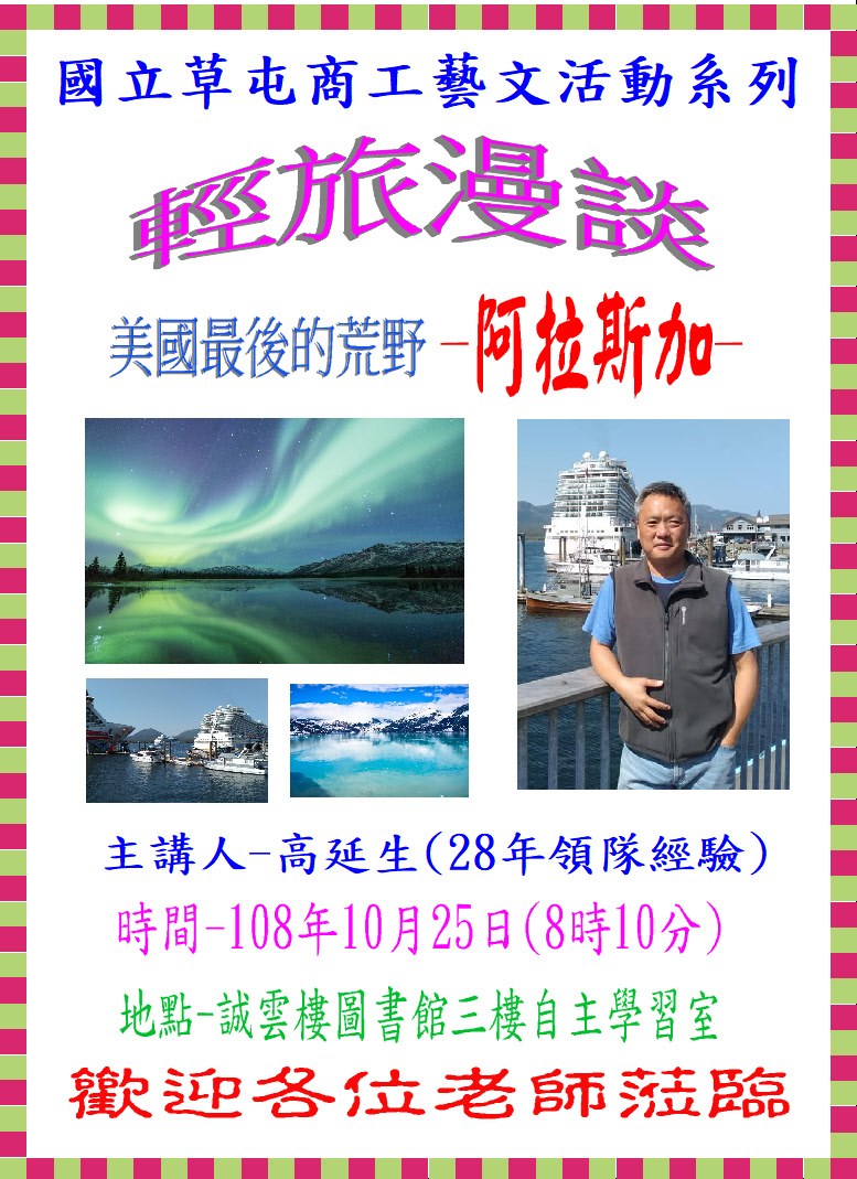 本次發現南投之美攝影美學藝文演講,配合本校63周年校慶活動,邀請南投縣國姓鄉長流國小呂秋明校長蒞校,...